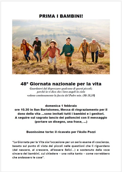 Domenica 1° febbraio nella nostra comunità si celebrerà la 48a giornata nazionale per la vita. Nella locandina e nell'allegato tutte le informazioni e dettagli Leggi »