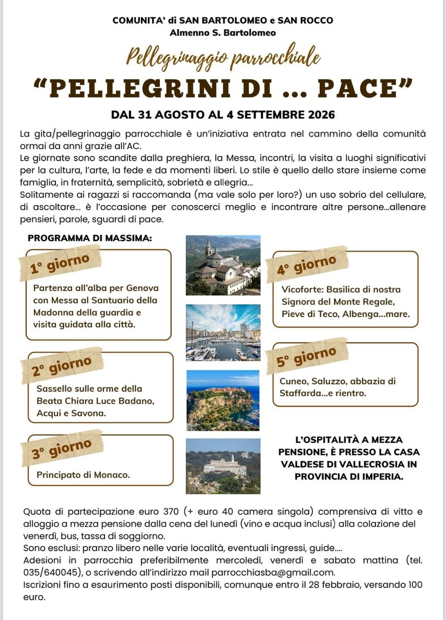 Nei giorni scorsi è stato consegnato il bollettino di gennaio 2026. Da computer o da tablet nella sezione "PARROCCHIA", selezionando sulla destra "BOLLETTINO PARROCCHIALE" è possibile visualizzare il numero di Dicembre 2025 e tutti i numeri precedenti del nostro bollettino. Buona lettura Leggi »