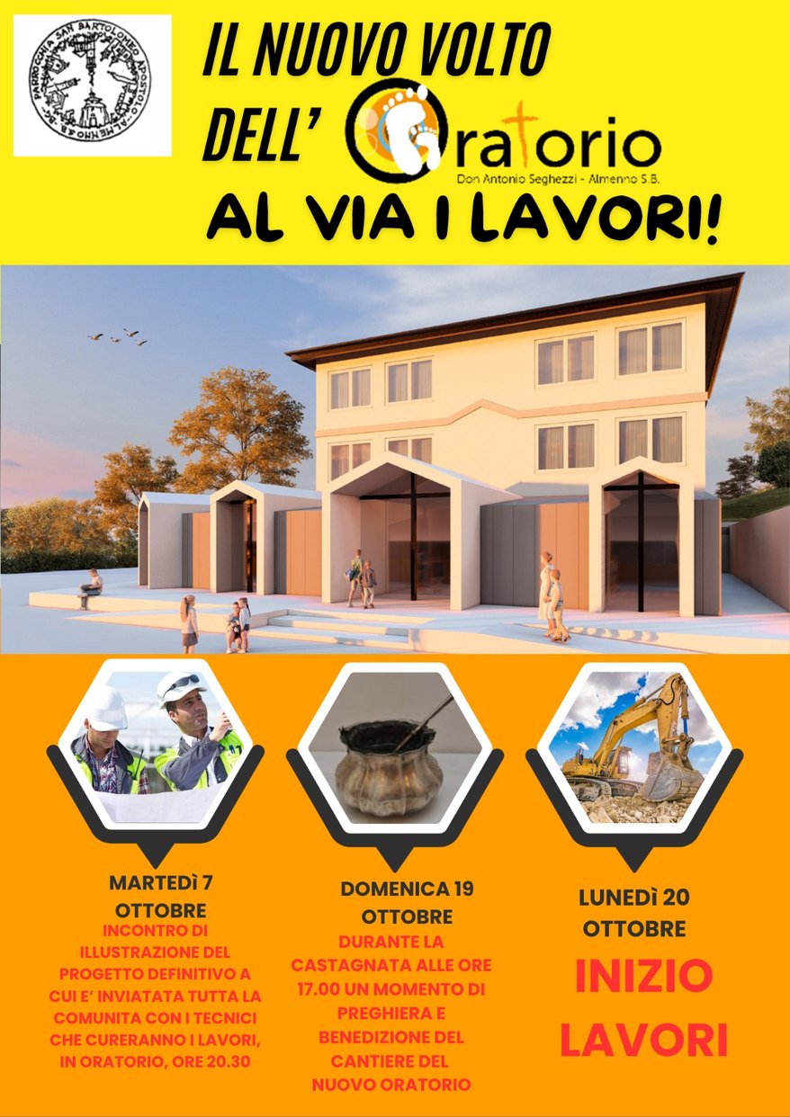 Il nuovo volto dell'oratorio: presentazione del progetto esecutivo ed inizio lavori: nella locandina tutte le informazioni e gli appuntamenti